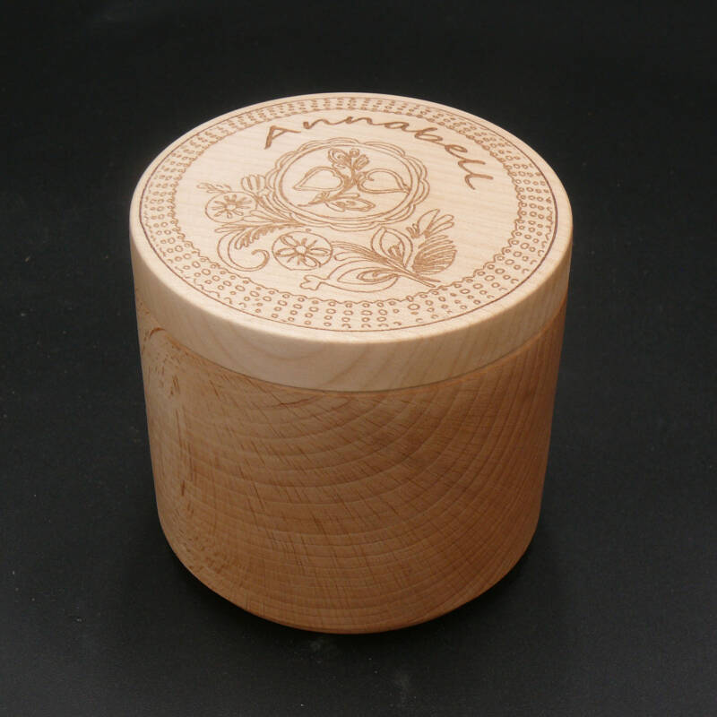 Die bunt bemalten und teilweise auch aus Hartholz gedrechselten Dosen sollten in ihren verschiedenen Ausprägungen symbolisch das Gute und Schöne verkörpern. Obwohl sie sich im Stil ähnlich sind, gleicht kein Exemplar dem anderen. Die Oberseite des Stülpdeckels weist in der Mitte das Hauptmotiv auf, oft ein Heiligenmedaillon, gelegentlich mit einem Sinnspruch umgeben. Auf der Wandung finden sich Blütenranken und weiße spitzenartige Umkränzungen in Schablonentechnik.