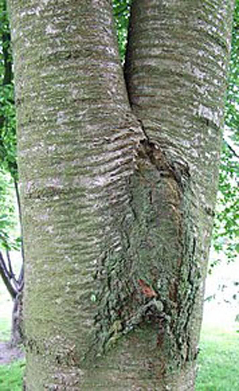 Erreicht eine Wuchshöhe von bis zu 30 m. Der Baum ist in der Jugend raschwüchsig und bildet einen kurzen, vollholzigen Stamm mit runder und breiter Krone aus. Alte Bäume erreichen Stammdicken bis zu einem Meter. Der Stamm ist immer nach rechts drehwüchsig und von einem gelblichweißen, kernlosen Holz. Sie kann einen Nasskern ausbilden. Die Triebe sind dick und bräunlichgrau mit auffallender, fünf- bis neunspuriger Blattnarbe.