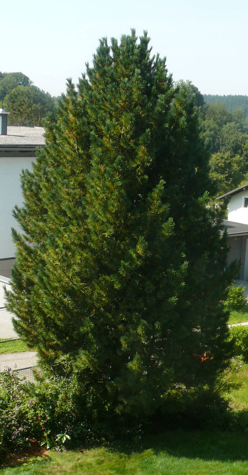 Baumhöhe von 10 bis 30 m, maximal 40 m. Die Weißkiefer weist im unteren Stammbereich eine tiefrissige, platte Borke auf, während sie im oberen Bereich bis ins hohe Alter eine dünne, fuchsrote Rinde hat. Die Borke der Schwarzkiefer ist grau bis dunkelbraun und tief gefurcht. Beide Baumarten sind Zweinadler, die Nadeln sitzen immer paarweise auf den Zweigen und sind in sich gedreht.