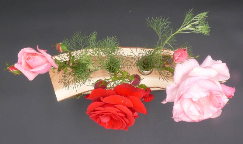 Blumen-Gestell mit Reagenzglas, Zwetschke und Buche:
